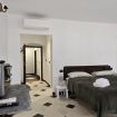 Internamente l'alloggio dispone di un letto matrimoniale large (180x200), un divano letto con due letti singoli, una cucina, una cabina armadio ed un bagno completo.