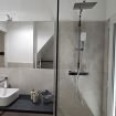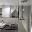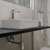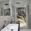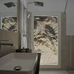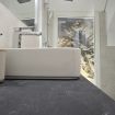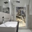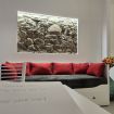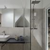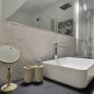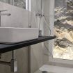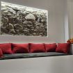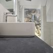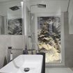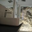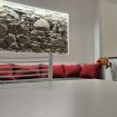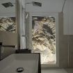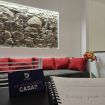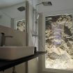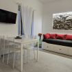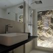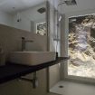 con soggiorno e cucina a vista, un letto matrimoniale con cabina armadio, un divano letto composto da due letti singoli ed un bagno con la doccia nella roccia retroilluminata.